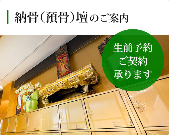 毎日お経が響きわたる本堂内にあり、ご本尊様と納骨(預骨)壇の阿弥陀様に見守られながら、ご先祖様のご遺徳を偲んでいただくことができます。永代に渡りご供養・管理いたします。
