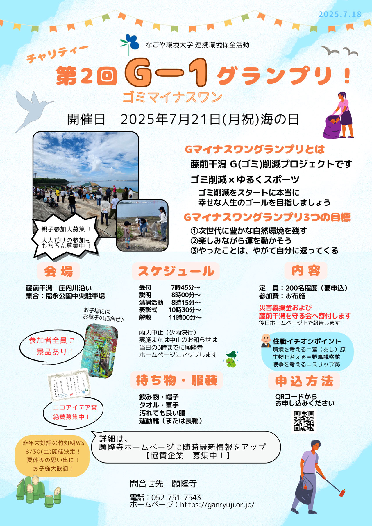 第2回「G-1(ゴミマイナスワン)グランプリ」を2025年7月21日[月・祝]の海の日に開催します!