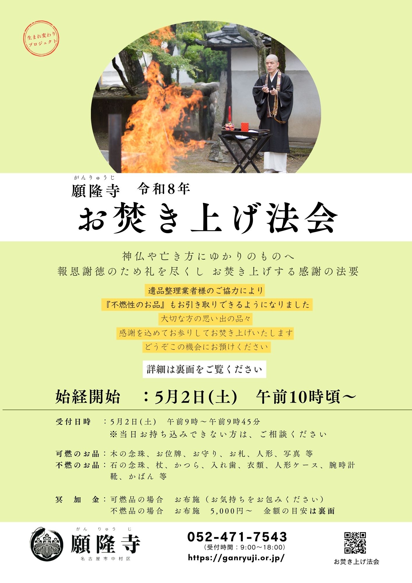 | 受付日時 | 2026年5月2日[土] 午前9時45分までに願隆寺までご持参ください。 |