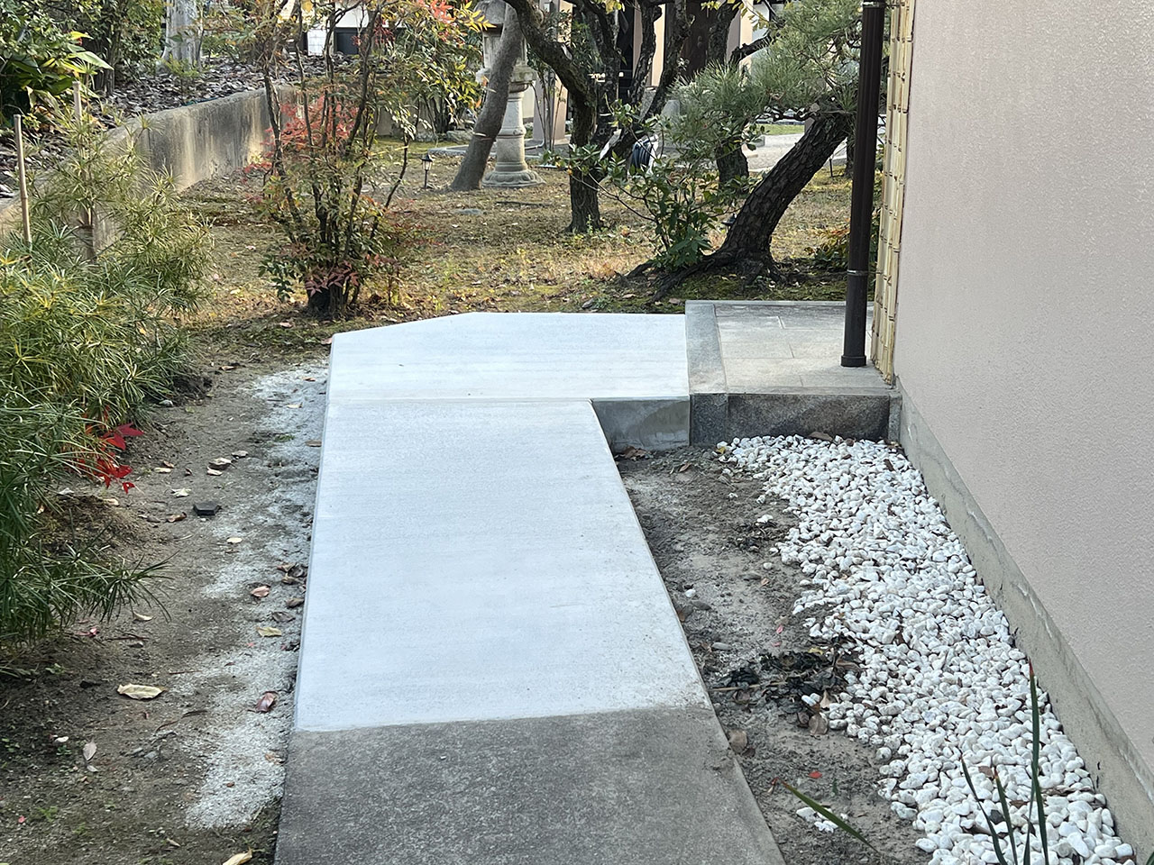 庫裡玄関前の通路をスロープに改修しバリアフリーにしました。