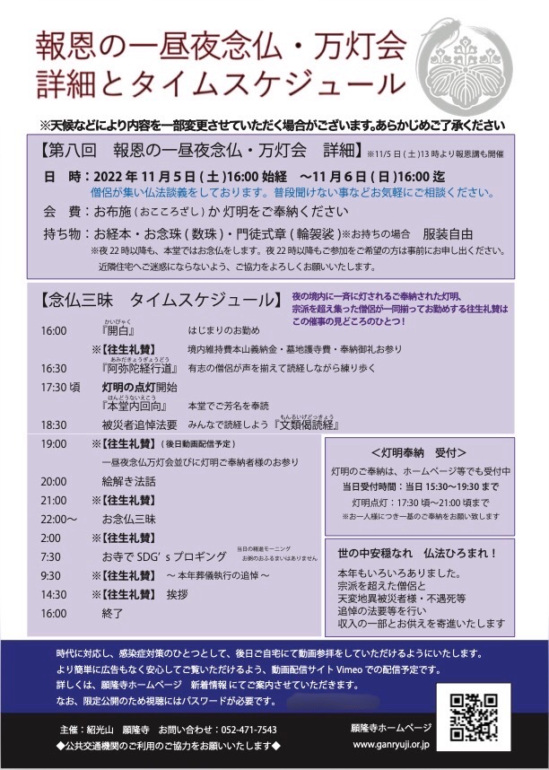 世の中が大きく移り変わっている今だからこそ、仏様に日頃の報恩感謝を伝える機会にしていただければと思います。