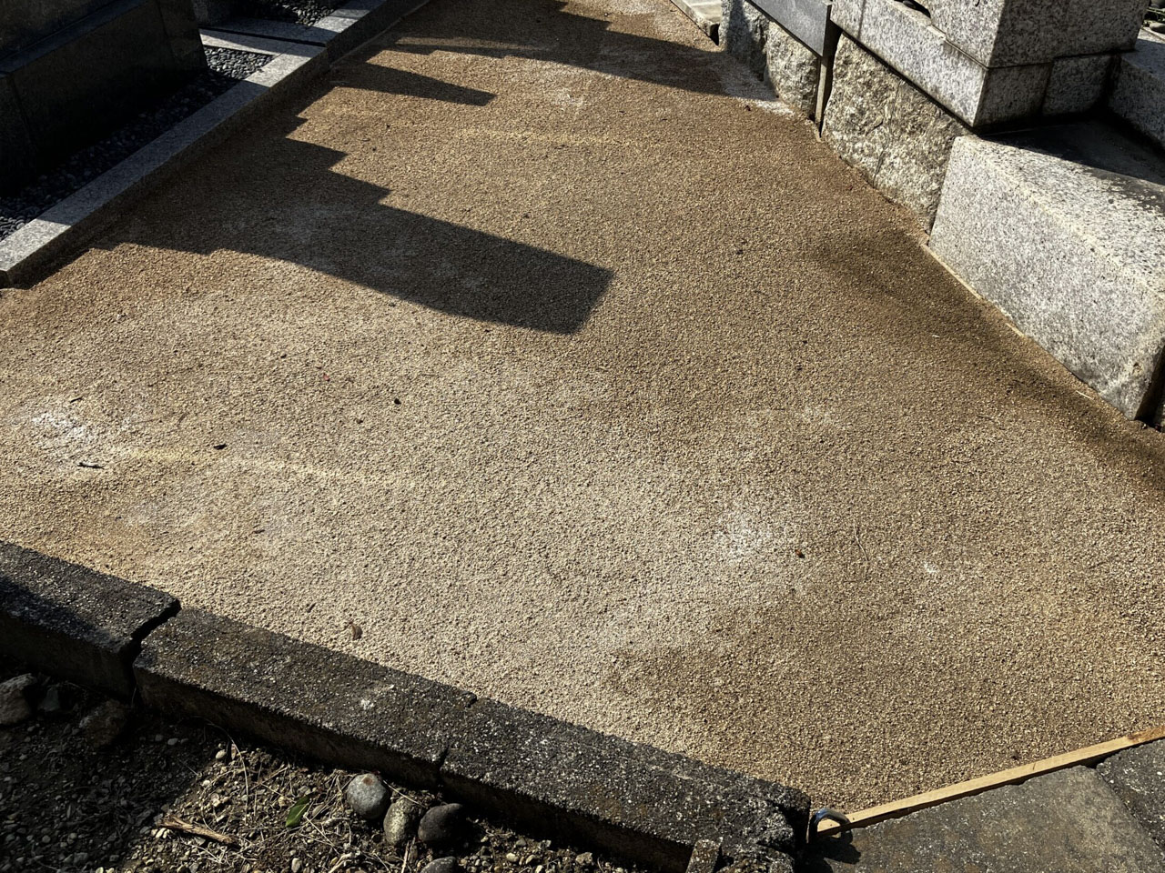 また、駐車場側の墓地(1)に防草と美観向上のために「固める土」を敷かせていただきました。墓地(2)の「固める土」の第二期工事は4月予定でおります。墓地(3)の第三期工事は未定です。最新情報は、掲示板とホームページにて詳細をご連絡いたします。