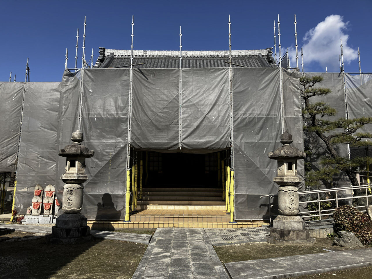 2023年11月より着工していた本堂・庫裏外壁塗装工事が無事完了いたしました。きれいに塗装された本堂・庫裏を、どうぞご覧ください。足場が外れてすっきりいたしました。