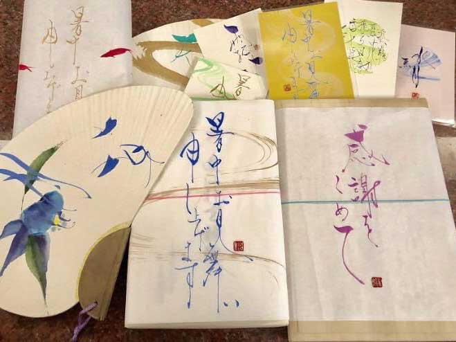 和文化を学びながら、祓い清めとなるような言の葉を書いて頂きます。書かれた作品は、金封包み、葉書、キャンドル、熨斗などにし、生活や仕事に取り入れ楽しんで頂けます。
